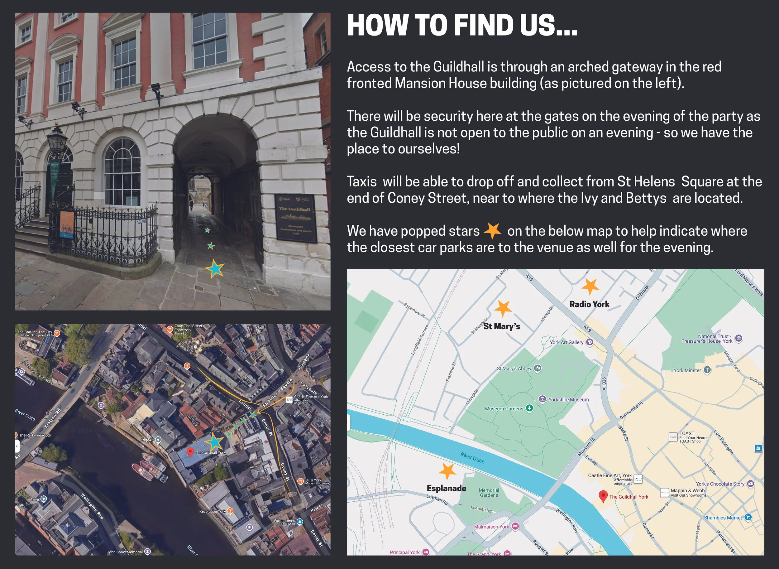 Please note that the venue is strictly no smoking or vaping, and for those who wish to, you will need to exit the grounds of the Guildhall to smoke/vape on Coney Street. A little map is below with a clearer view of how the Guildhall can be found.